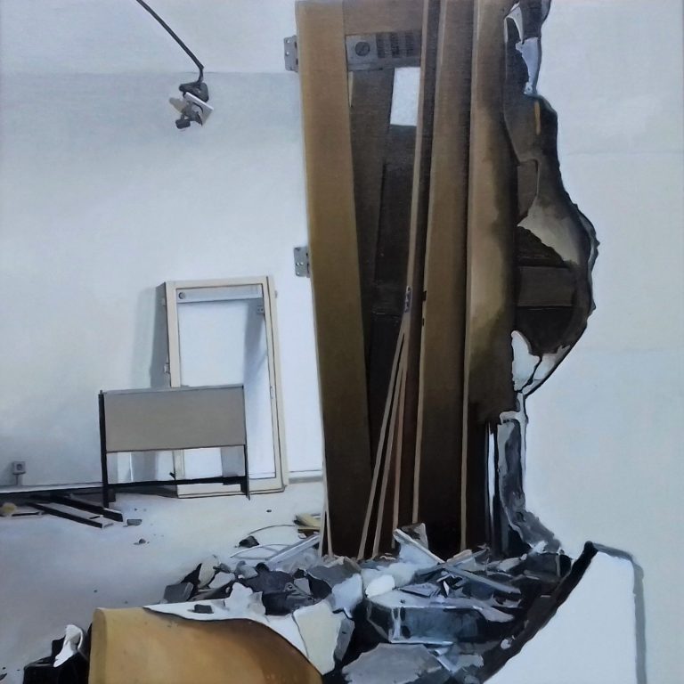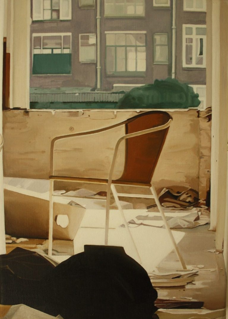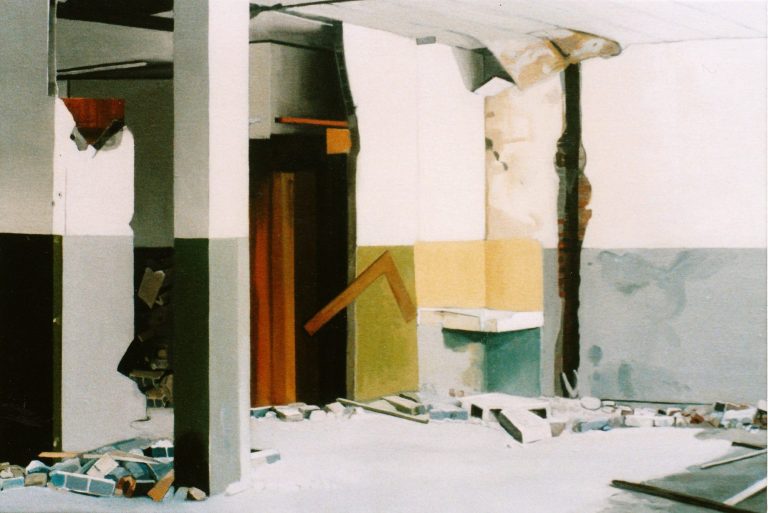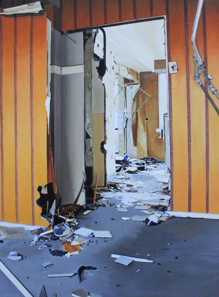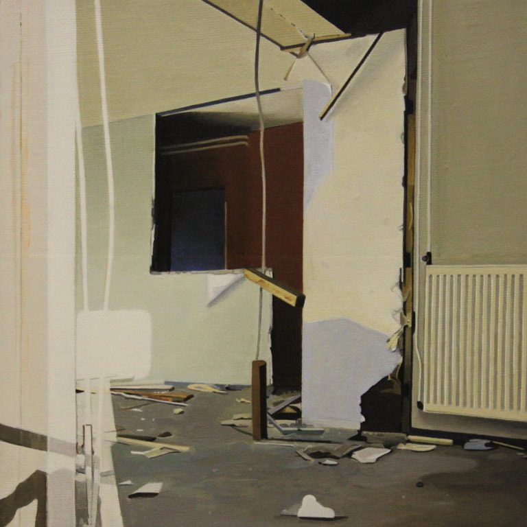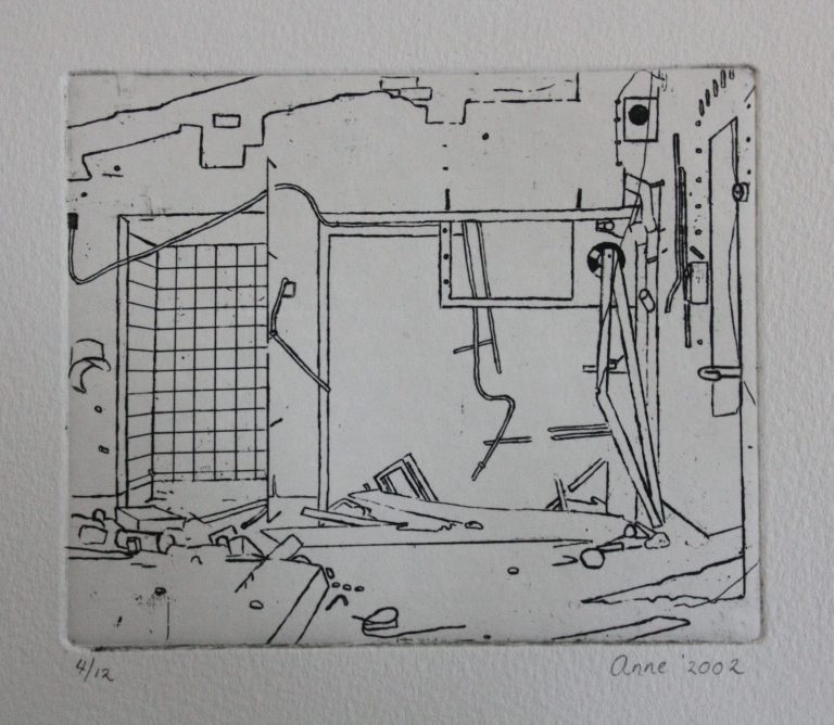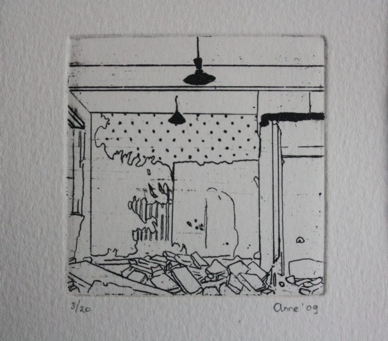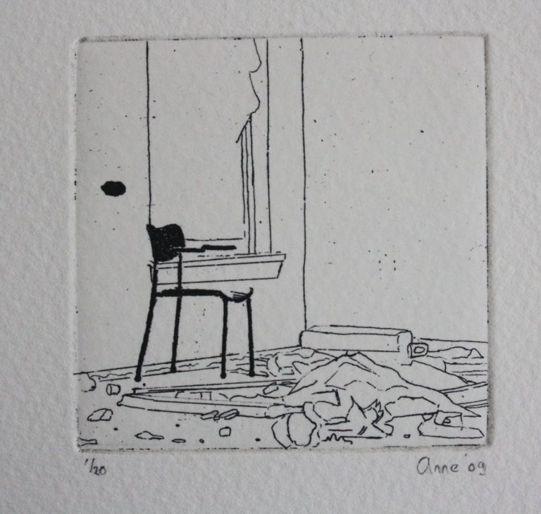 Het verhaal van Anne is een zoektocht naar littekens, die de grote stad achter laat, waar de slopershamers vallen, op plekken waar mensen woonden of werkten. Ze leest de ruimten eerst af met haar fototoestel. Uit een stapel foto´s komt ze tot haar keuze. De foto wordt vertaald in verf. Van dichtbij, op de huid van het schilderdoek vangt ze de verlaten ruimte. In een atmosfeer van vergrijsde kleuren staan voorwerpen, die niemand lijken toe te behoren, dan alleen aan het zorgvuldige oog van Anne die ze met grote aandacht en gevoel voor de kleinste detail tot een tweede leven lijkt te willen wekken. De mens heeft het werk verlaten. Eens maakte Anne series portretten van oude mensen. Er lijkt toch een overeenkomst tussen deze, door de tijd gegroefde mensen en de sporen van verval in de grote mensen stad. De schoonheid is het die zij zocht en vond in de portretten van hen die langzaam afscheid nemen van het aardse: de stad. Plekken maken plaats voor anderen: langzaam wordt het verleden uitgegomd.