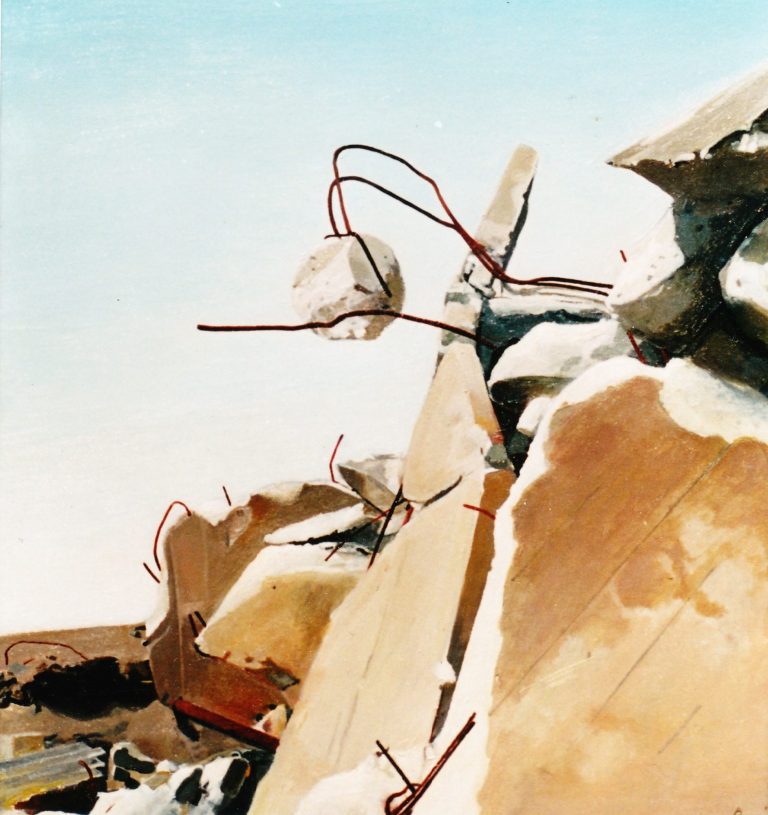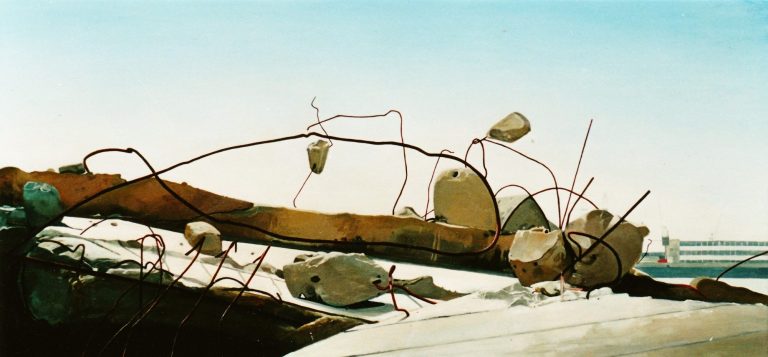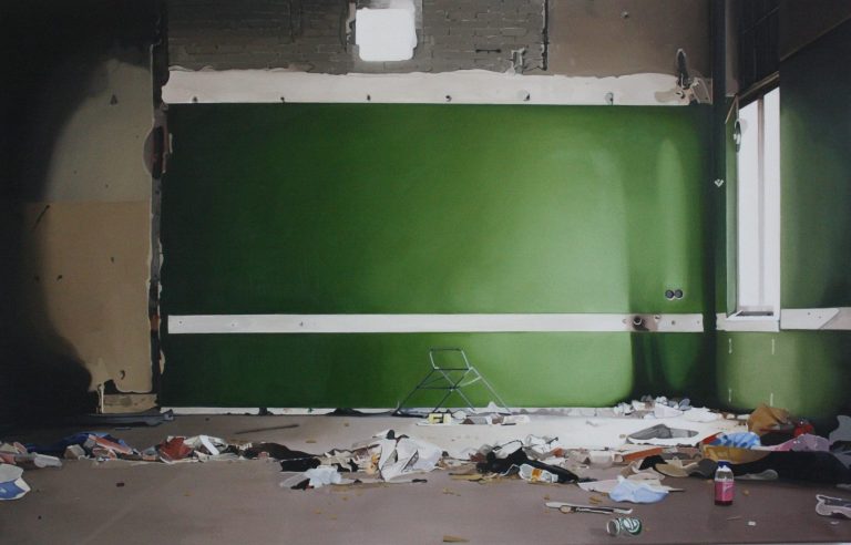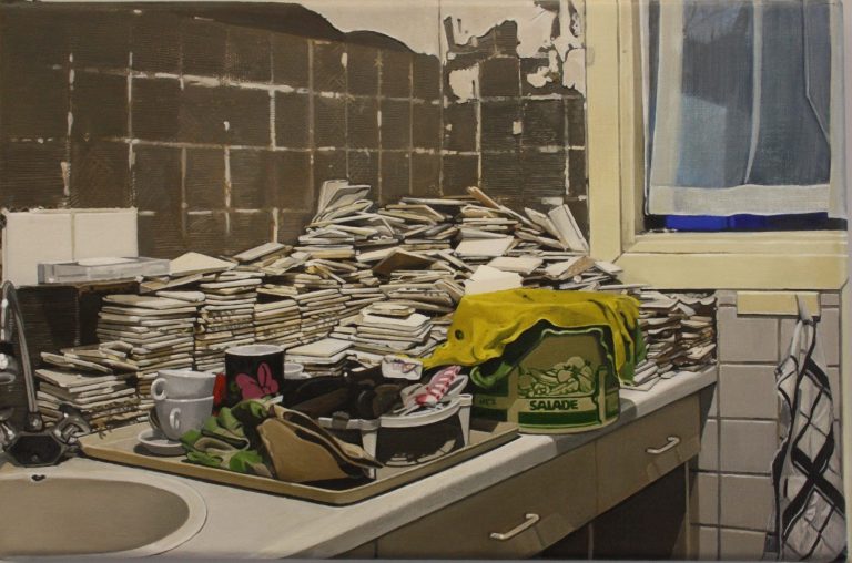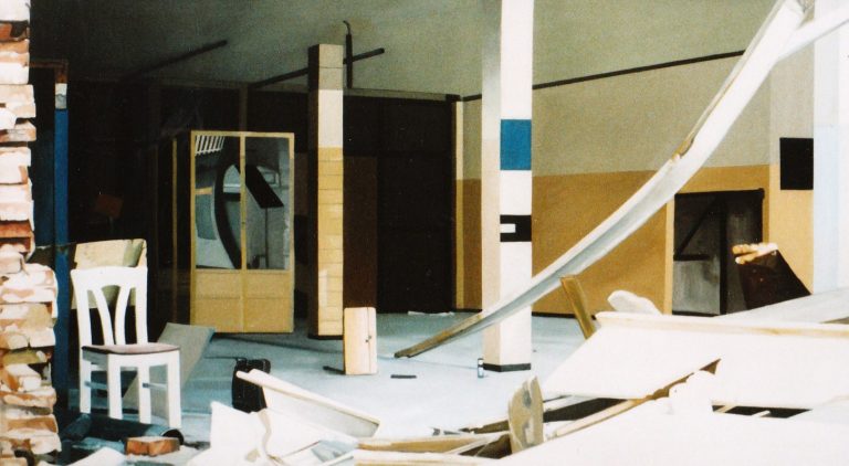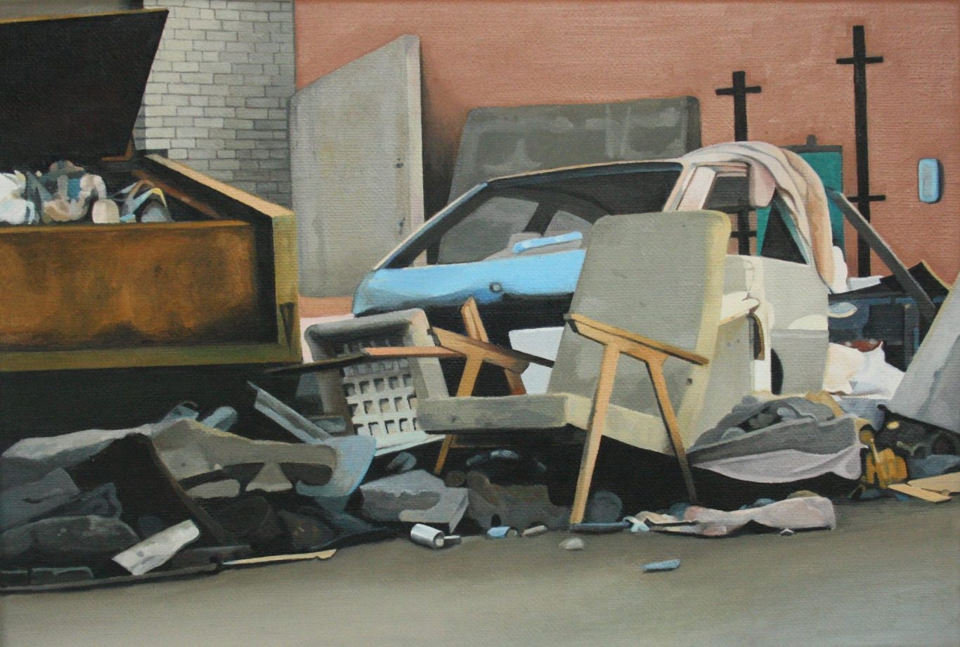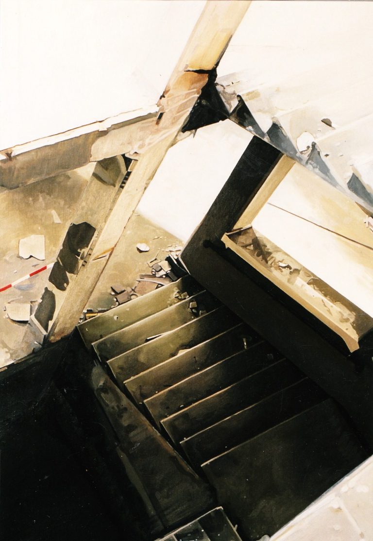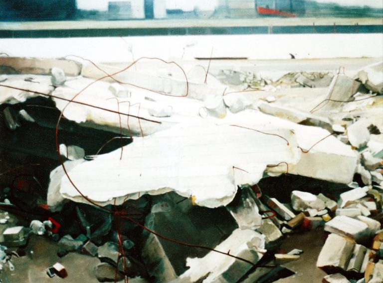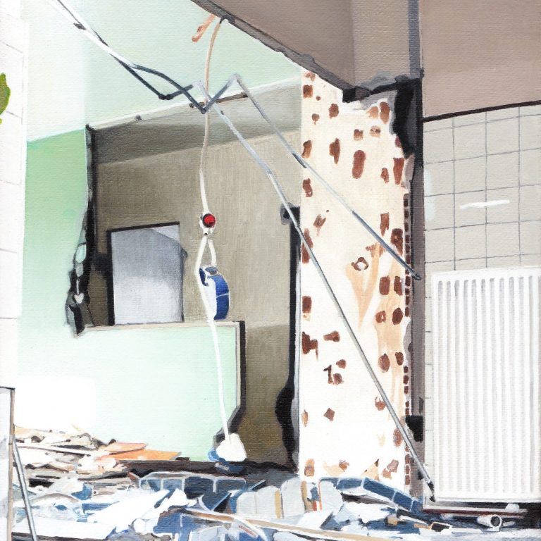 Het verhaal van Anne is een zoektocht naar littekens, die de grote stad achter laat, waar de slopershamers vallen, op plekken waar mensen woonden of werkten. Ze leest de ruimten eerst af met haar fototoestel. Uit een stapel foto´s komt ze tot haar keuze. De foto wordt vertaald in verf. Van dichtbij, op de huid van het schilderdoek vangt ze de verlaten ruimte. In een atmosfeer van vergrijsde kleuren staan voorwerpen, die niemand lijken toe te behoren, dan alleen aan het zorgvuldige oog van Anne die ze met grote aandacht en gevoel voor de kleinste detail tot een tweede leven lijkt te willen wekken. De mens heeft het werk verlaten. Eens maakte Anne series portretten van oude mensen. Er lijkt toch een overeenkomst tussen deze, door de tijd gegroefde mensen en de sporen van verval in de grote mensen stad. De schoonheid is het die zij zocht en vond in de portretten van hen die langzaam afscheid nemen van het aardse: de stad. Plekken maken plaats voor anderen: langzaam wordt het verleden uitgegomd.